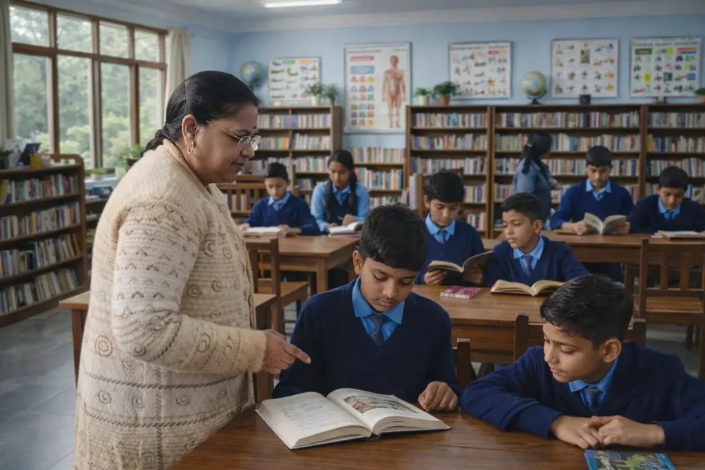 The school library offers a wide collection of academic books, reference materials, and reading resources to develop knowledge and reading habits.